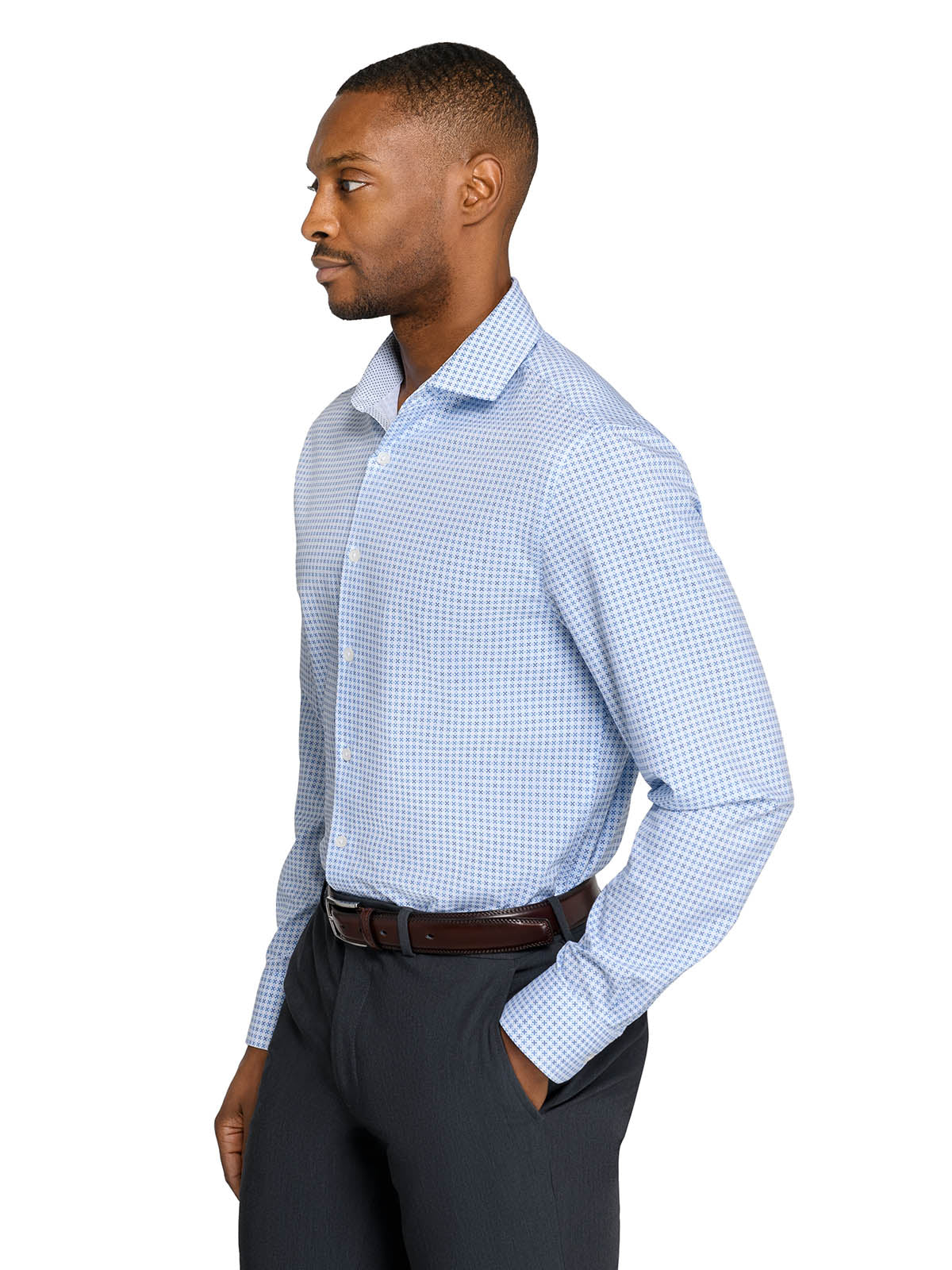 Our performance dress shirts feature moisture-wicking technology, four-way stretch, and wrinkle-resistant fabrics, ensuring you stay cool, dry, and sharp, no matter the demands of your day.